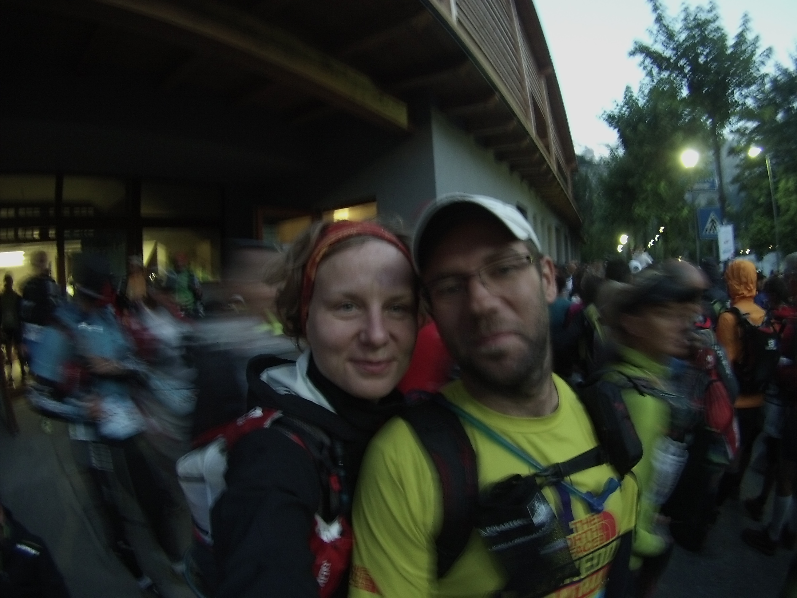 Stojíme v chladnom ale bezoblačnom ráne v Courmayeri na štarte, emócie obtekajú ako elektrina okolo každého účastníka. Hlásateľ je zarytý francúz a jeho prejav, akokoľvek dojímavý, je pre nás nezrozumiteľný, zachytávam slová Solidarité a Courage. Bežci si podávali ruky, aj tie naše niekto chytil, jeden týpek schmatol holú hlavu svojho kamaráta pred sebou a dal mu veľkého hubana na temeno. Pocity šťastia, odhodlania a spolupatričnosti sa mnou rozlievali ako slza, ktorá mi pomaly stekala po tvári. Vrtúľník nad hlavou a výstrel do neznáma nás odštartoval na dlhú cestu okolo Mont Blancu. Ľudia popri trati boli fantastickí, zvonce, potlesk a výkriky nás povzbudzovali na našej ceste 119 kilometrov dlhej s prevýšením 7.250 m.