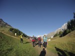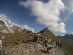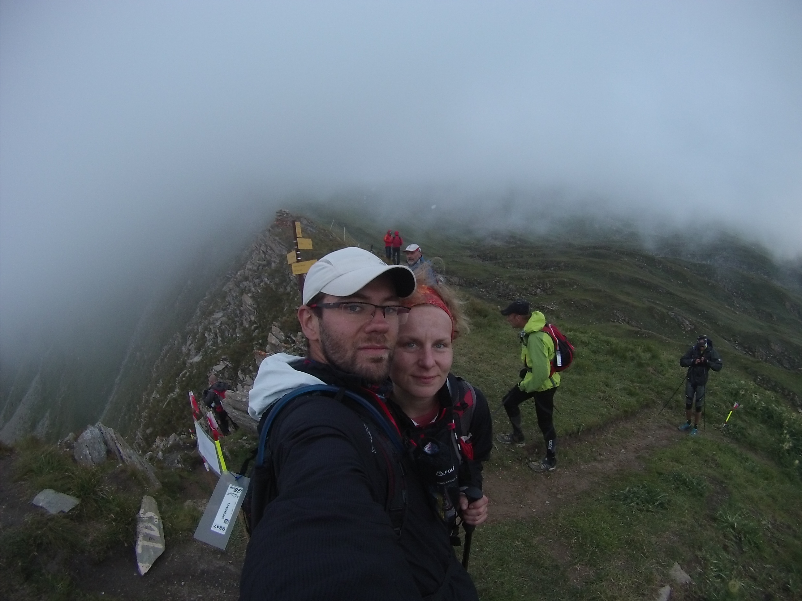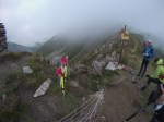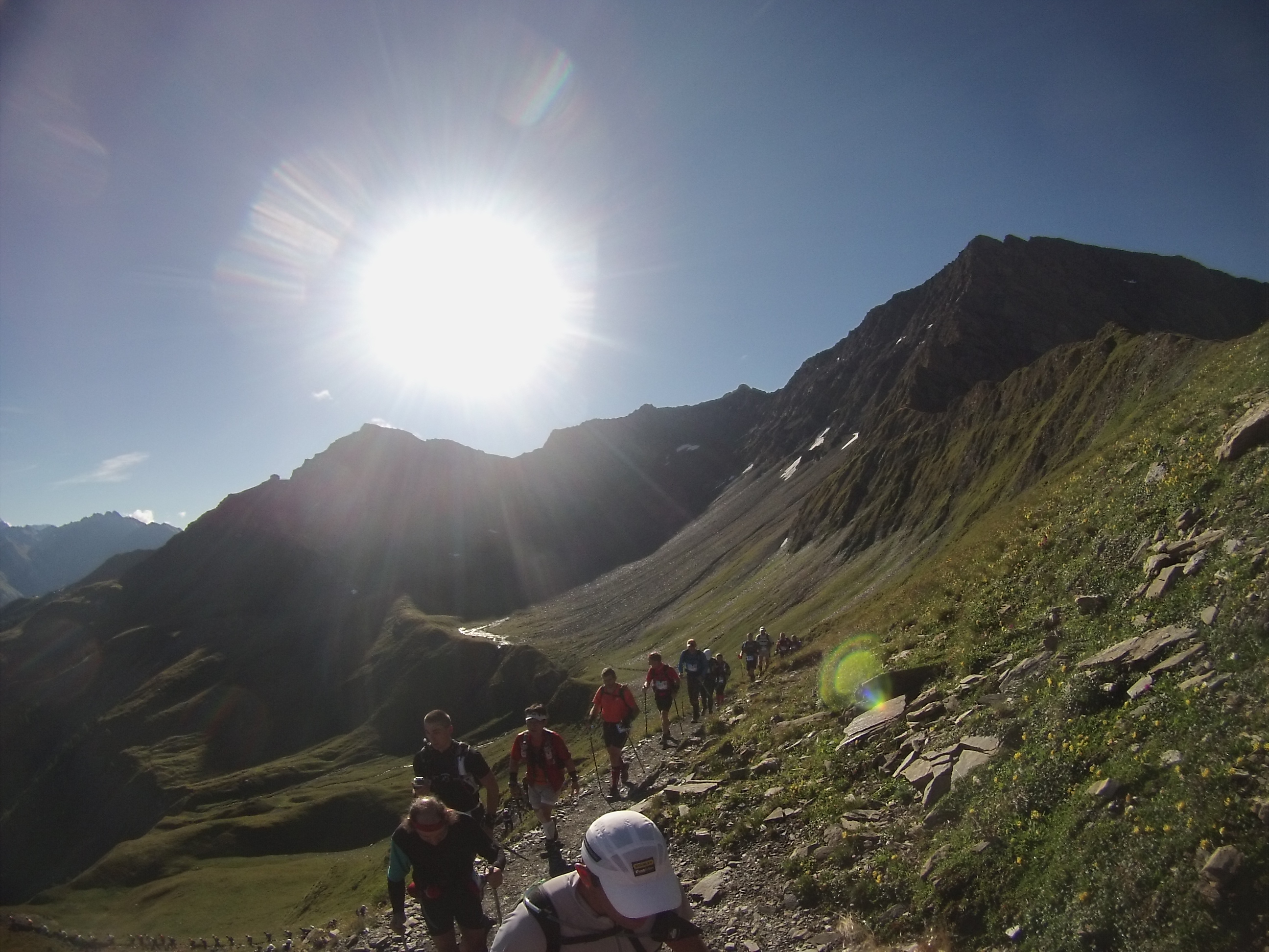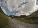 Výšľapy sú čoraz strmšie a nekonečné, síl začína ubúdať. V stúpaní na Passeur Pralognan usadám do trávy na odpočinok, vietor je studený a Zbyněk ma poháňa ďalej. Nekonečný kopec, výška 2.567, v sedle čakajú kontrolóri a opäť skenujú skúmavým pohľadom stav, som v poriadku, aj keby som nebola, slušne sa poďakujem za povzbudenie Merci et au revoir. A už sa po lanách spúšťame dole. Na skalách neskúsených spolubežcov obiehame a snažíme sa dobehnúť rezervu, ktorú si vypýtalo stúpanie. Blíži sa polovica trate, veci na prezlečenie nás čakajú v Cormel Rosseland. Ľudia nám po francúzky oznamujú kilometráž a dodávajú nám odvahu. Alleiz Alleiz Gabriela, bon Courage, deux kilomètres. Po anglicky sa tu veľmi nehovorí, ich škoda, moja jazyková zásoba sa intuitívne rozrastá, rastiem bežecky aj intelektuálne. 😛