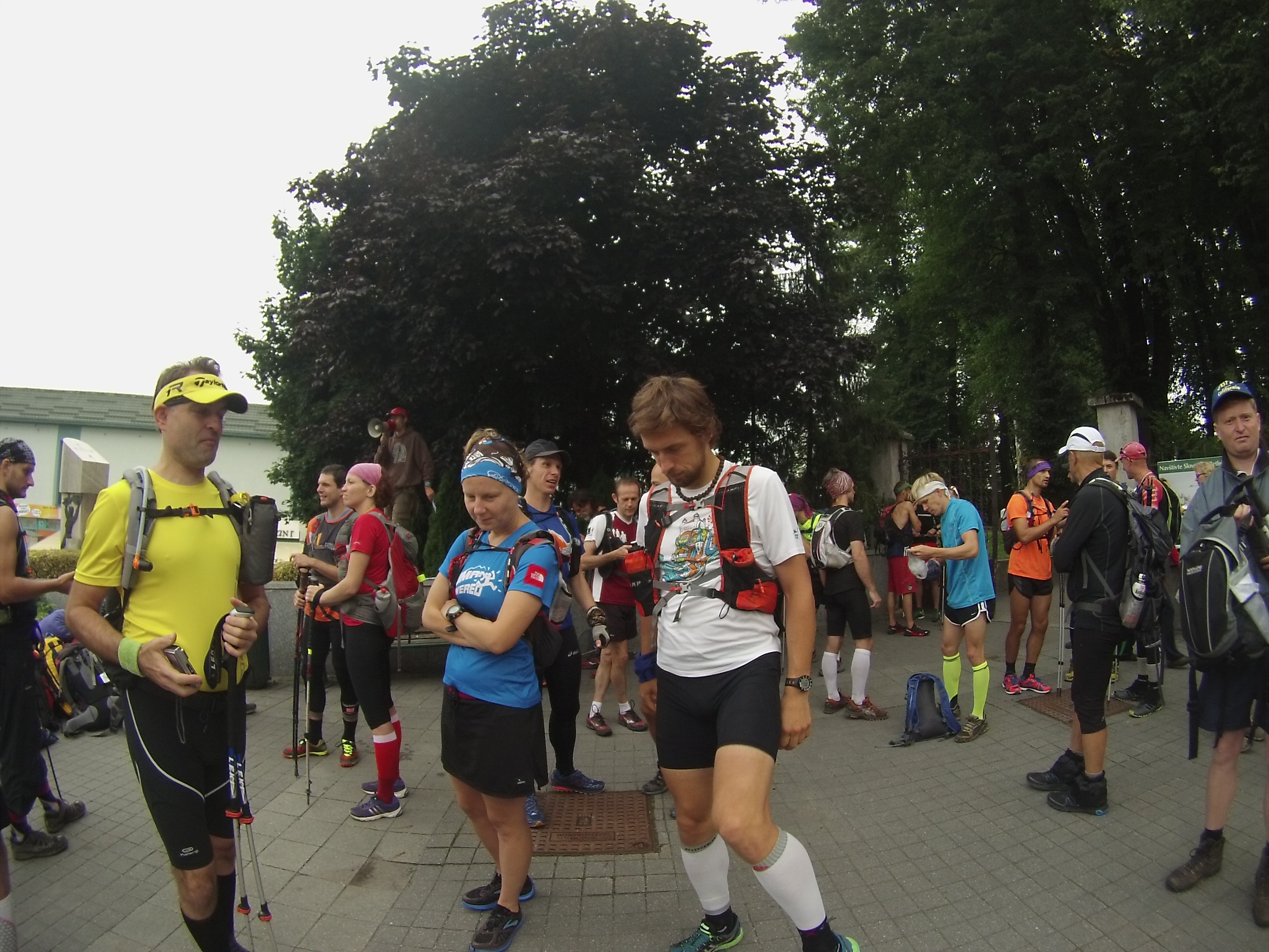 No, ale nebol čas sa zdržovať a hurá do Javorníkov, ako ich poznám ja. Hrebeň sme prebehli celkom svižne, i keď už nás chytala kríza, hlad a opäť smäd. Bežala som popredu objednať na Portáš, a hlavne zvítať sa s ocinkom, ktorý sa prišiel na nás pozrieť, ako blbneme na stovkách. Pivo, kofola, pivo, polievka a pekne zbehom do Marikovej. Hore po ceste, dole po ceste, v peknom tempe, to sme sa už asi tešili na ďalšie pivo. Našťastie sa ochladilo a pri pohľade na čiernu oblohu v stúpani do Orgoňovej Kýčery, sme vytušili, že príde aj sprcha. Prišla, ale búrka nás obchádzala, kým blesky osvecovali cestu, hromy prerušovali aj tak tichý rozhovor, ale dážď bol skôr šetrný spoločník po rozpálenom dni. Zato cesty ostali pre lyžiarov, väčšinou som rozbahnené rigolá ustála aj na svojich krátkych lyžiach, balansovala som na vyjazdených koľajách a vymyslela pár nových nadávok, ale keď som zahučala pekne zo šikma už som bola ticho. Pokorne prejdem blatisté peripétium, a možno ten bahenný zábal, bude mať nakoniec regeneračné účinky. Ja som zmĺkla, aby vyniklo Zbyňkovým výkrikom. Heh, no užili sme si a aj zaspomínali na Veľký Gríč z Ponitrianskej. Zaujímavé, že na takéto roz(j)….bahnené cesty zahranicou nenatrafíme.