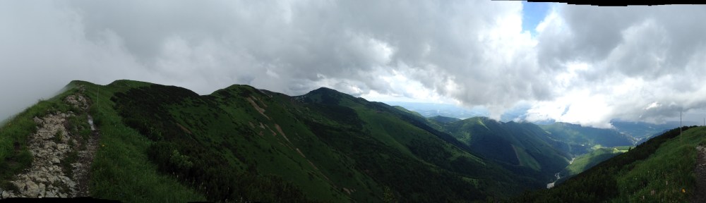Na prvej živej kontrole vo Vrátnej sa dozvedám, že sa Rozsutec tento rok nekoná vraj kvôli bleskom. Verím, že keď tadiaľ bežali prvý to vyzeralo inak ale keď som sa tam dostal ja, tak už vysvecovalo slnko. Za Rozsutcom sa vraciame na tradičnú trasu šmykľavkou dole zo Stohu a ďalej cez Poludňový Grúň, smer chata pod Chlebom. Tam ma už čaká Gabika, ktorá mi ako minulý rok robí support, a hlavne si užíva krásy hrebeňa s malým drobcom v bruchu. Bola vždy na blízku, ak by som to chcel vzdať na 50 kilometri. Tento rok, aj vďaka počasiu, 100vku nevdzávam, ide sa mi dobre, a je to moja posledná stovka aspoň v tomto roku.