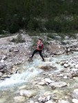 Z 1.5l camelbacku, mi ostalo v cieli pol litra vody, bez dopĺňania vody do camelbacku. Nie preto, že by sme šľapali len na pive, ale po okolitých skalách tiekla číra horská voda, neskutočne osviežujúca a „výtečná“. Ku koncu sme začali dúfať v 15 hodinový čas,  síl bolo dosť, nebol dôvod sa šetriť. Posledný masaker do Cortiny ma trochu odrovnal, nenajedla som sa poriadne, dúfajúc ešte v jednu občerstvovačku a ostalo mi zle od žalúdka. Zmena trate, tiež spôsobila, že sme nevedeli, presne odhadnúť, čo nás čaká. Ale tempo sme si držali, vytiahli sme čelovky. Posledné kúsky parmezánu, ešte jedno pivko pred poslednými 5 kilometrami, a juchúúú smer cieľ. Budú tam ešte ľudia fandiť, budú nám tlieskať, zaštekne po nás aspoň pes, kým dobehneme? Jasnéé, v Cortine to žilo, ľudia po ulici kričali Bravi Brava, (čo asi rozlišovali podľa pohlavia, ťažko povedať, keďže naša talianska slovná zásoba pozostávala zo štyroch slov) Nakoplo nás to, úsmev taký široký a pocit taký radostný, dokáže vyvolať ľudský potlesk. Sme v cieli 14:13, pani nás víta a pýta sa odkiaľ sme. You are from Slovakia and you from Czech, so Czechoslovakia. Yes, my dear all together, forever.