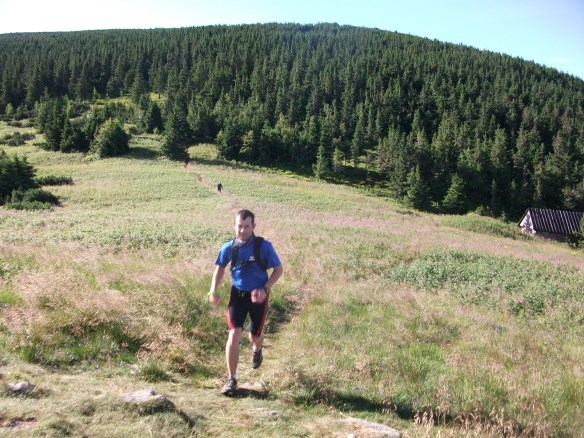 Prišiel piatok a s ním aj krásne daždivé počasie garantujúce dostatok vody na hrebeni a mi sme vyrazili smer Telgárt. Príchod do večerného daždivého Telgártu s cestou lemovanou našimi spoluobčanmi predávajúcimi kuriatka a čučoriedky, už len registrácia prichystať si miesto na spanie a chytro na večeru do miestnej reštaurácie aby sme ešte stihli večerný brífing Ako sa patrí sme k večeri pridali ešte po jednom pivku aby sme sa po brífingu v škole vrátili ešte po jedno ďalšie, pre neskúsených – to aby sa ľahšie zaspávalo. Pred spánkom ešte nachystať veci na zajtra aby bolo všetko po ruke a nemuseli sme ráno strácať čas. Noc prebehla do cela pokojne a až na miernu bolesť v zuboch ktorá ma sprevádza posledných pár týždňov. Raný budík o pol piatej a už vyliezame zo spacích vakov. Tak teda ideme na to namazať nohy a ostatné miesta náchylné na odreniny použiť leukoplast na správnych miestach zbaliť batožinu na prevoz a batoh na beh, ľahké raňajky a môžeme sa zapojiť do masy bežcov v bočnej uličke kde sa už tradične začína. Stretávame známych posledné debaty a prichádza štart. Celá masa sa dáva do pohybu. S rastúcimi stupňami stúpania sa masa trhá a tempo spomaľuje a spomaľujeme aj mi keď od trafo stanice ideme už len rýchlou chôdzou. Prichádzame na kontrolu na Kráľovej holi v čase 7:14 čo je ešte o minútu lepšie ako sme si plánovali so far so good, dávame tenké bundy a dávame sa znovu do pohybu- behu v ktorom ostávame až po prvé kopčeky za Andrejcovú. Počasie perfektné aj napriek vetru ktorý fúka z juhu. Relatívne bez mrakov iba jemné „mlieko“ na Horehroní. Napredujeme a okolo 9-tej už zostupujeme dole do s. Priehyba. Beží sa mi dobre a tak Miša nechávam za mnou bežať jeho tempom a ja sa valím dole cestou obieham pár dvojíc a 9:18 dobieham do sedla, Mišo pribieha o pár minút neskôr a je s toho výsledný čas 9:22 v s. Priehyba. Doplňuje vodu dávame ionťák, hroznový cukor a vydávame sa pomalým tempom do stúpania na Kolesárovú. Informácie s kontroly nie sú úplne jasné a strácať čas zisťovaním sa nám nechce a tak sa uspokojíme s tým že už 7 dvojíc je na ceste smerom na Čertovicu.