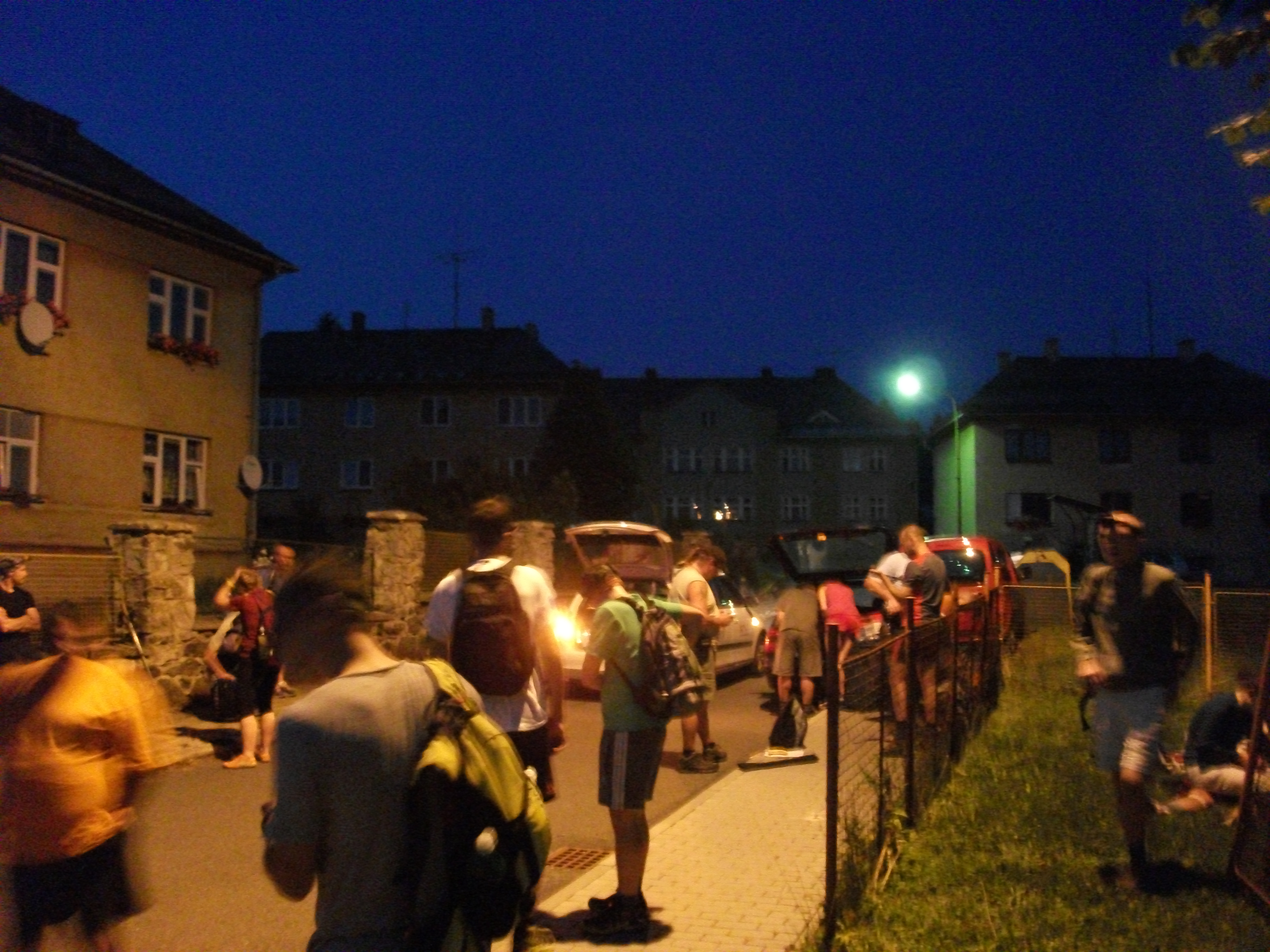Pod pódiom netrpezlivo prešľapuje stovka bežcov, na ktorých v nestráženej chvíli namieria lúče reflektorov a stredobodom púte sa stáva oslava diaľkového pochoda. Zopár slov od Olafa, vyhodený prúd, akési smiešne pečiatkovanie, alebo nultá kontrola, ale nakoniec nám už nič nebráni vydať sa chaoticky, jedny zprava, iný zľava do ticha a tmy hôr len za svetla čeloviek, ktoré po prvých kilometroch vytvárajú prerušovanú svetelnú čiaru stúpajúcu na Kralický Snežník.