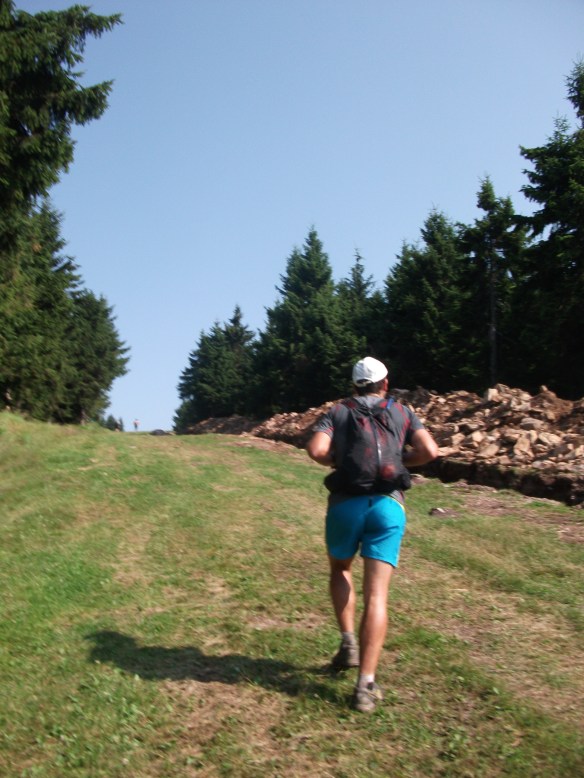 Kontrola na 60k nám poskytuje polievku, jedlo, pitie v miestnej reštaurácii. Prezliekame spotené veci, balím a prebaľujeme pár drobností do batôžkov a vyrážame. No naládovaný, sa skôr ťažkopádnym krokom sunieme do kopčeka. Na trati sa doťahujeme s párom bežcov a jedným dievčaťom, obehli sme my ich, aby nás potom veselo obehli vo výstupe po zjazdovke, kde veselo preklopkali okolo nás s paličkami.