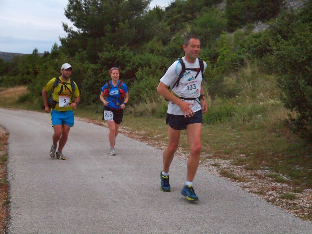Štart máme spoločný s pretekármi na 47 km, priamo pred vstupom do Veľkej Paklenice, ale do tej sa pozriem až na konci mojej trate, na začiatok nás čaká príjemný traverz, aby sme následne začali stúpať nekonečným kaňonom Malej Paklenice. Stúpanie prekladané drobnými lezeckými vsuvkami dokonalé na rozohriatie celého tela. Ešteže je tento rok počasie netypicky chladné a prehriatie nám nehrozí. Pomaly sa dostávame nad úroveň lesa kde nás čaká prvý kontrolný bod z vodou (Ivine Vodice). Stúpame ďalej aby sme dostali do sedla a otvorených údolí, kde sa odohrávalo mnoho z filmovaných príbehov Karla Maya. Prvý pekný zbeh a ja sa už váľam na kameňoch, ech dnes budem mať ešte o zábavu postarané a smutne spomínam na Istriu, ktorá v porovnaní s týmto bola naozaj behateľná. Blížim sa na kontrolu kde ma čaká prvý dropbag a ja viem, že som to s vodou podcenil, na moje šťastie to niektorý s vodou prehnali a tak mám aspoň čosi v camelbacku. Nasleduje “more or less runnable surface”, ako avizoval Šimun Cimerman, sám organizátor, takže to znamená železničný násyp na ďalších pár kilometroch sprevádzaný po stranách nápismi varujúcimi pred mínami z vojny 1991-95. Niečo pre tých, čo by si to chceli skrátiť, škoda len že sa občas chodník stráca a tak človek nevie či je ešte na “bezpečnej” ceste.